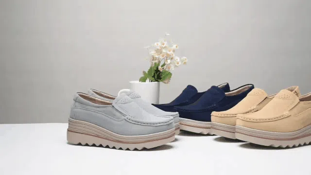 أحذية كاجوال بتصميم wedge-heeled مع شريط سهل الارتداء